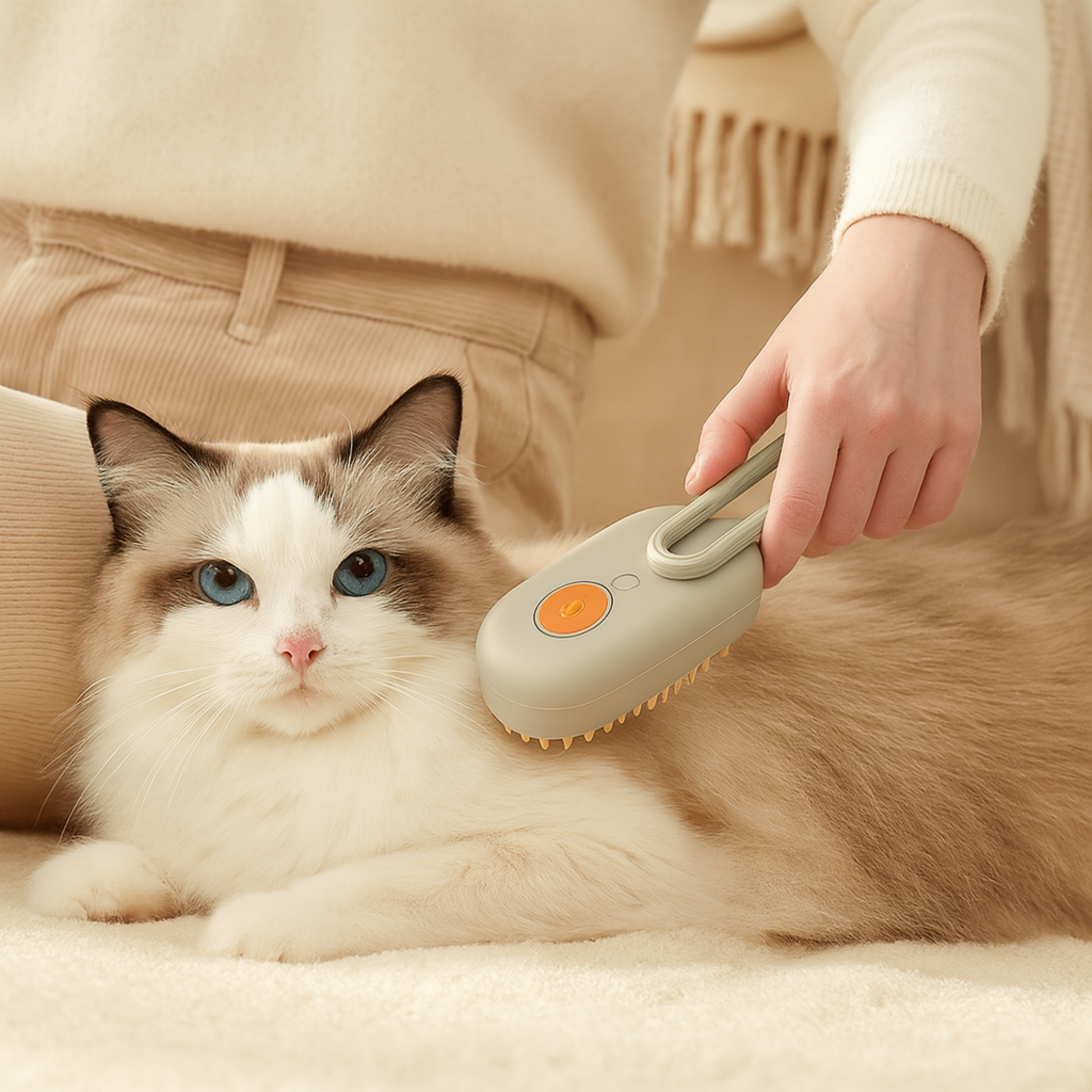 El cepillo 3 en 1 con vapor reduce la muda, elimina enredos y masajea suavemente sin dañar la piel 🐾. Disfruta de un pelaje más brillante y una casa libre de pelos mientras tu mascota vive una experiencia cómoda y relajante en cada cepillado.
